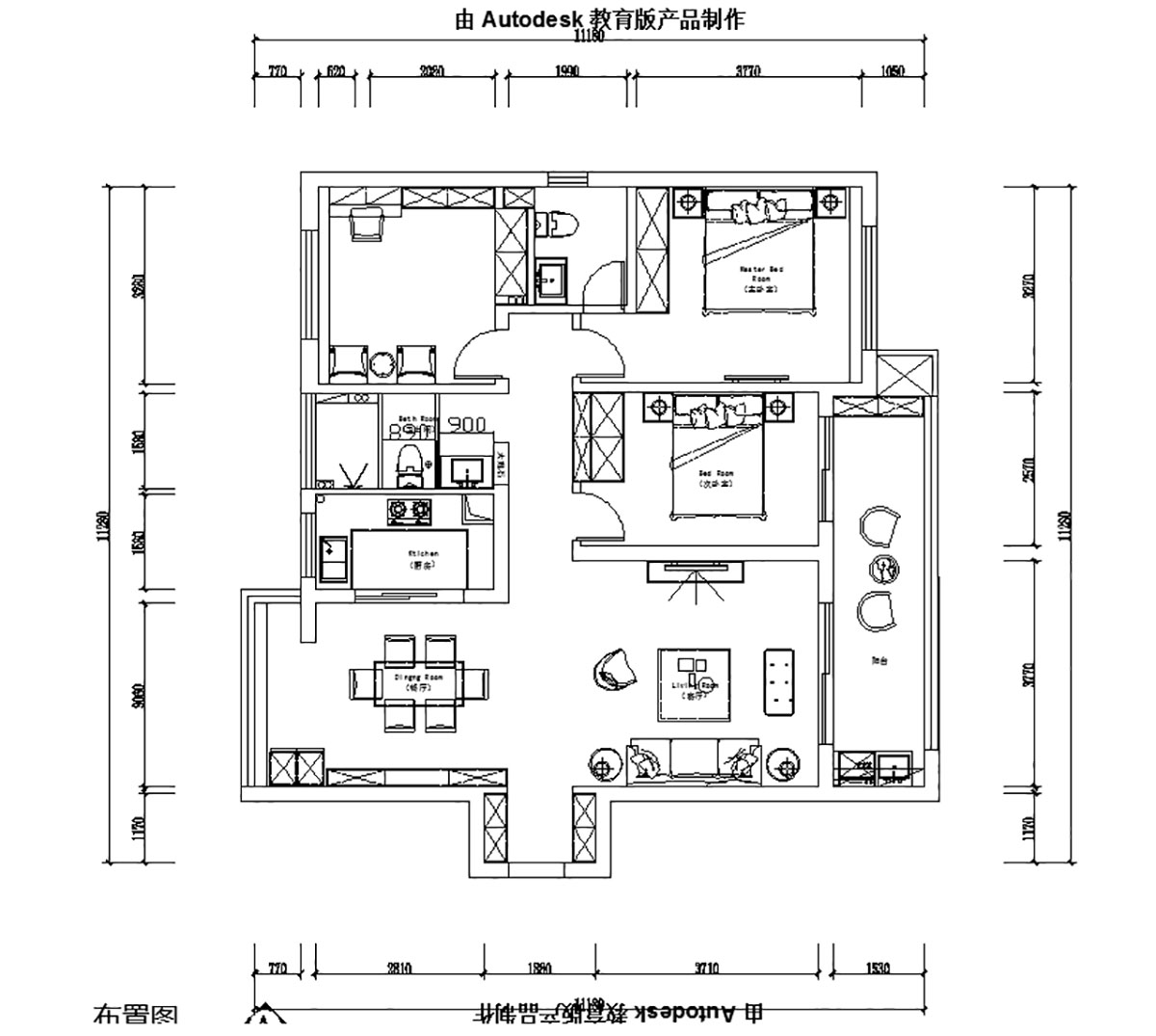 案例戶型:三居室